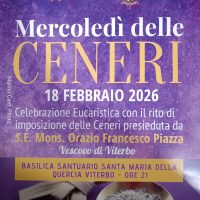 La Diocesi di Viterbo ha annunciato la celebrazione del Mercoledì delle Ceneri, in programma mercoledì 18 febbraio 2026. La Celebrazione Eucaristica con il rito di imposizione delle Ceneri sarà presieduta da Orazio Francesco Piazza, vescovo della diocesi. L’appuntamento è fissato per le ore 21 presso la Basilica Santuario Santa Maria della Quercia, uno dei luoghi…