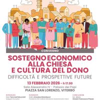Si terrà venerdì 13 febbraio 2026, alle ore 17.00, presso la Sala Alessandro IV del Palazzo dei Papi in Piazza San Lorenzo a Viterbo, il convegno dal titolo “Sostegno economico alla Chiesa e cultura del dono. Difficoltà e prospettive future”, promosso dalla Diocesi di Viterbo nell’ambito delle iniziative legate al Sovvenire e alla sensibilizzazione sul…