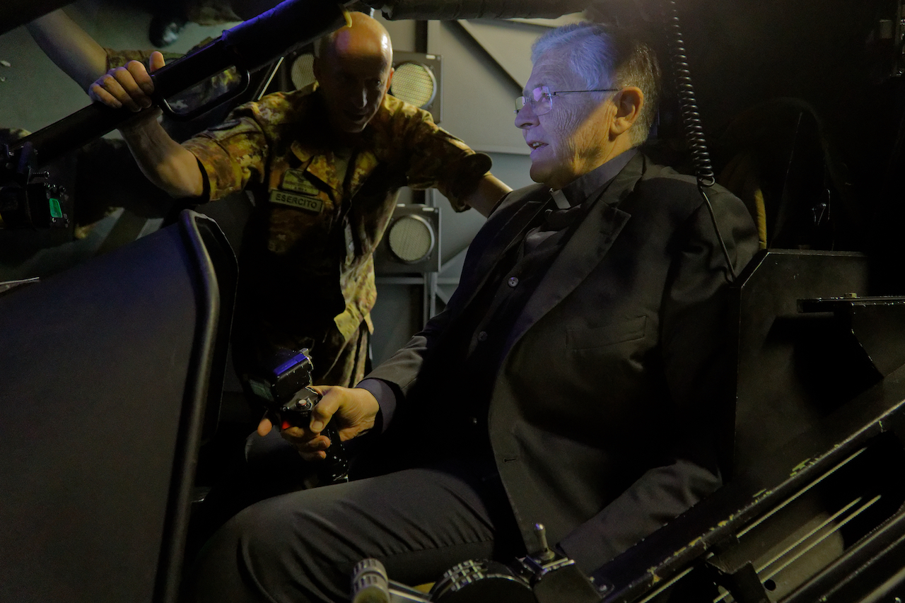 Foto 5 Il vescovo all’interno del simulatore di volo