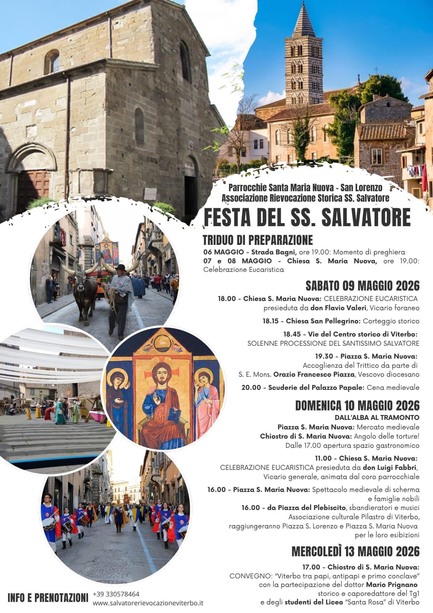 Viterbo si appresta a vivere uno degli appuntamenti più attesi della primavera: la Festa del SS. Salvatore, in programma dal 6 al 13 maggio 2026, promossa dalle Parrocchie di Santa Maria Nuova e San Lorenzo insieme all’Associazione Rievocazione Storica SS. Salvatore.