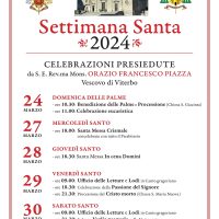 Ecco gli orari delle celebrazioni presiedute da S.E. Mons. Orazio Francesco Piazza, presso la Cattedrale San Lorenzo in Viterbo nella Settimana Santa 2024. Locandina Settimana Santa 2024