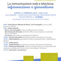 “La comunicazione web e televisiva: informazione e giornalismo”, sabato 15 febbraio 2020 Sala Mendel, complesso agostiniano della Santissima Trinità piazza Trinità, 8 (parcheggio riservato da via san Giovanni Decollato) Convegno organizzato da Ucsi Lazio e Ucsi Viterbo in collaborazione con l’Ufficio comunicazione sociali della diocesi di Viterbo e la partecipazione del Centro studi criminologici di Viterbo. La…